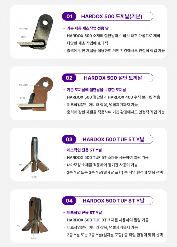 - HARDOX 500 절단날 + HARDOX 400 수직 브라켓
